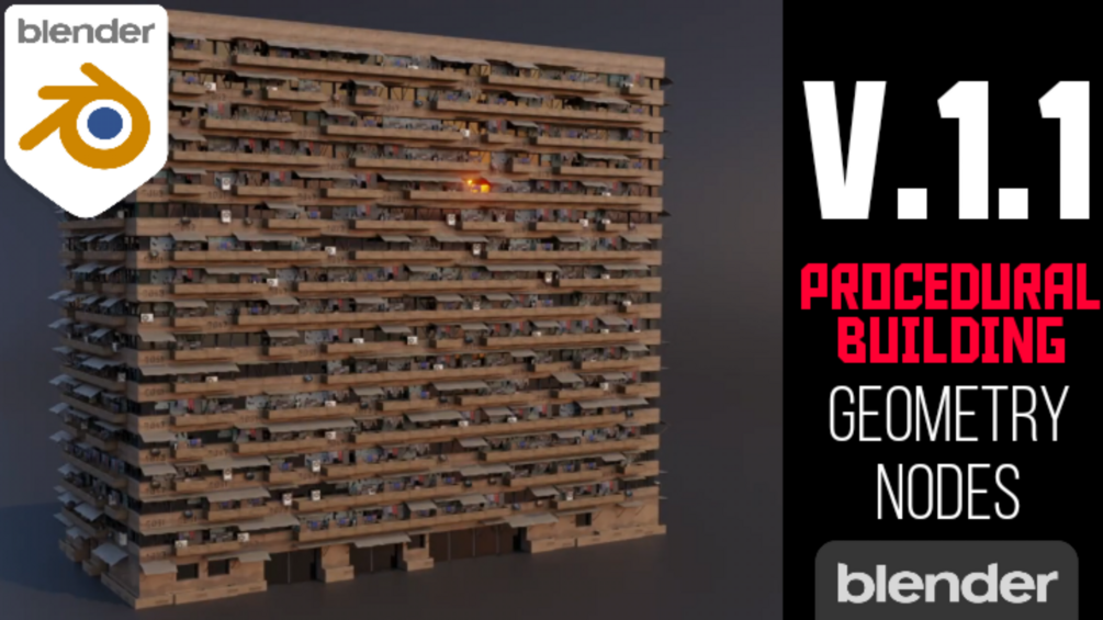 This geometry nodes is compatible with blender 3.0 - 3.12. with this cool new feature you will be able to generate buildings procedurally at your desired dimensions . You can add roof-top assests to your building to get more realism. A clean interactive UI you can modify and control many parameters of the building . Check out the video below: